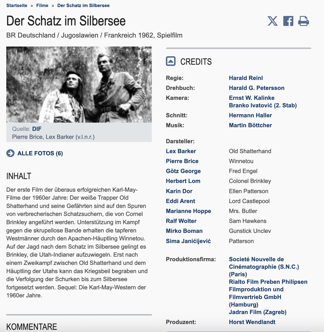 Fig. 3.11 Screenshot aus dem Eintrag von filmportal.de zu Der Schatz im Silbersee (R: Harald Reinl, BRD, YUG, FRA 1992)#