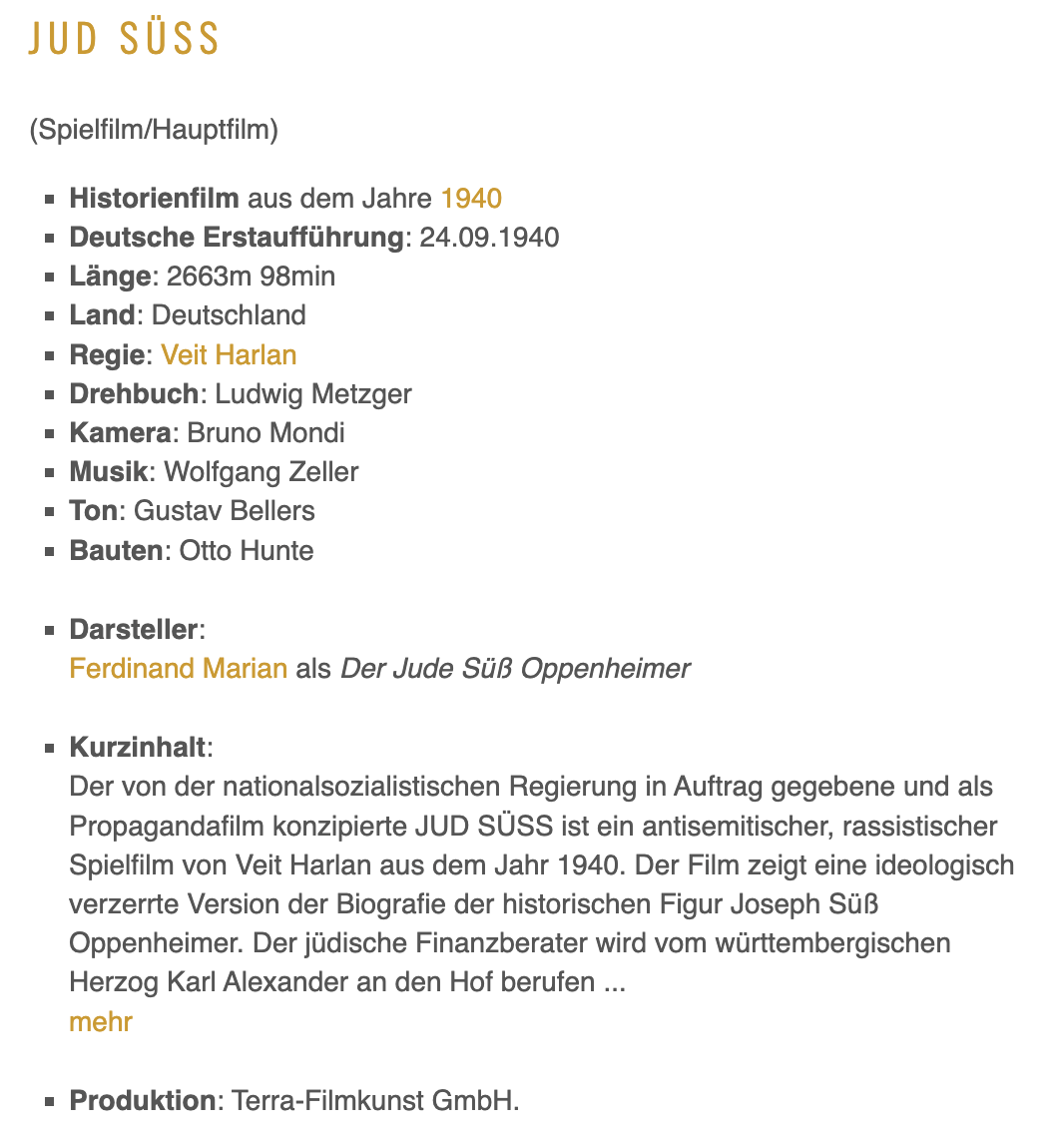 Fig. 3.13 Screenshot aus dem Eintrag der Murnaustiftung zu J*d Süß (R: Veit Harlan, DEU 1940)#