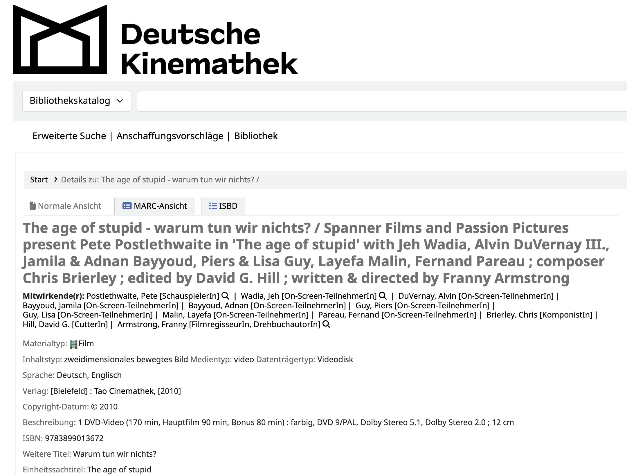 Fig. 3.2 Ergebnisansicht eines Bestandeintrags im Katalog der Deutschen Kinemathek Bibliothek#