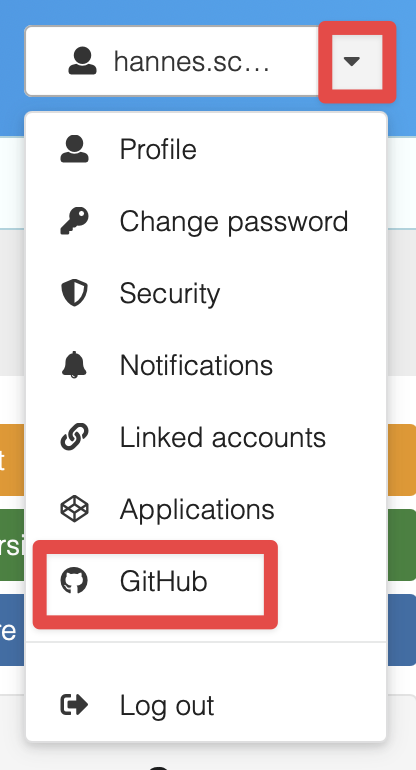 Fig. 3.4 Zugriff auf die GitHub-Integration ist im Profil-Menü oben rechts hinterlegt.#